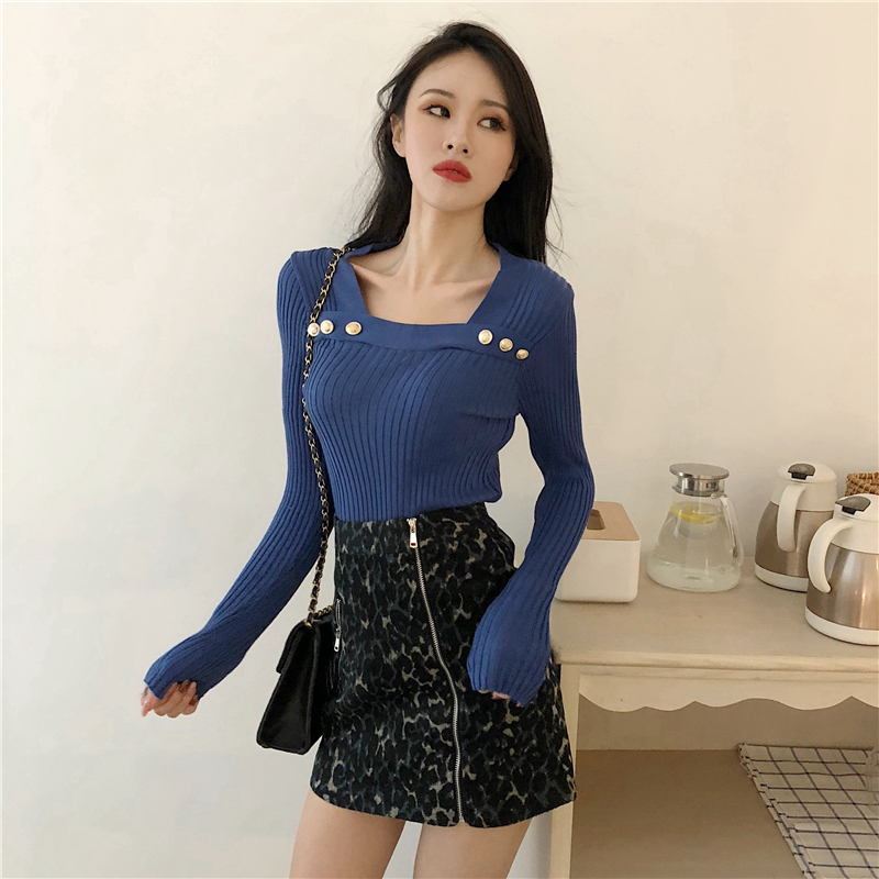 高腰豹紋半身裙女秋冬2018新款百搭短裙包臀裙+針織打底衫兩件套