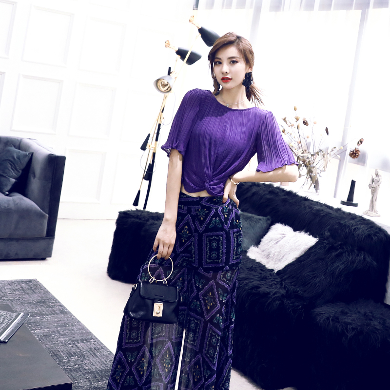 雪紡闊腿褲套裝女夏季2018新款時尚寬松休閑洋氣高腰女神范兩件套