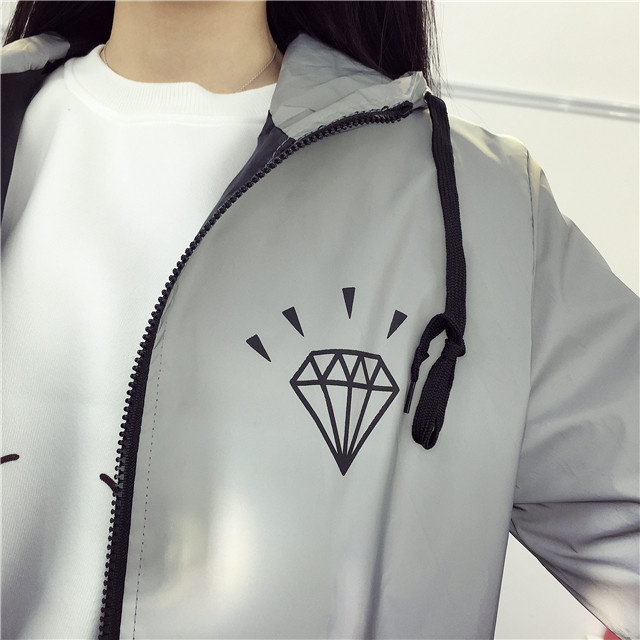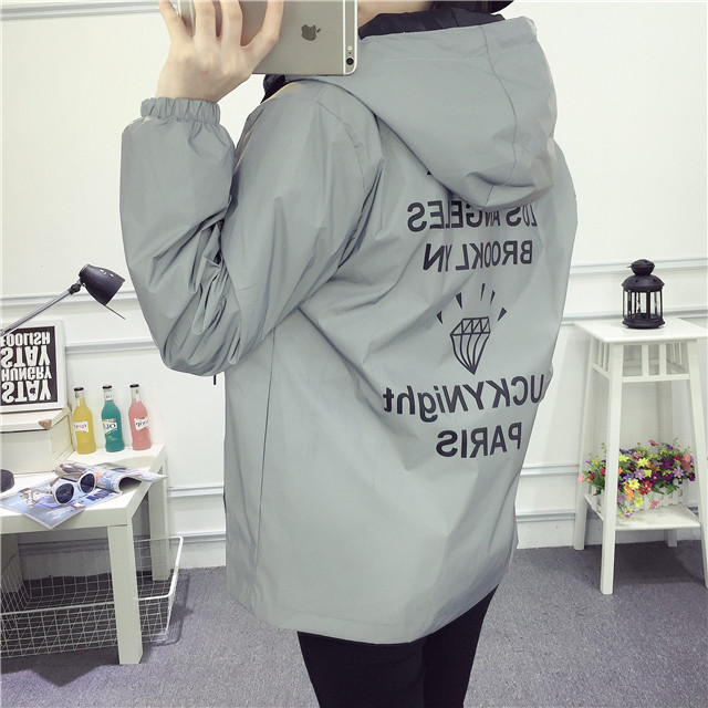 春秋季韓版男女夜光發光沖鋒風衣潮牌3M反光衣服日系學生薄款外套