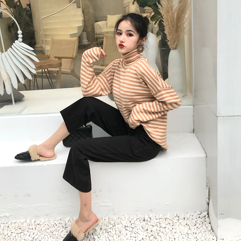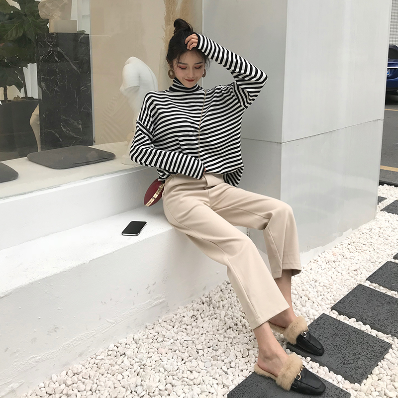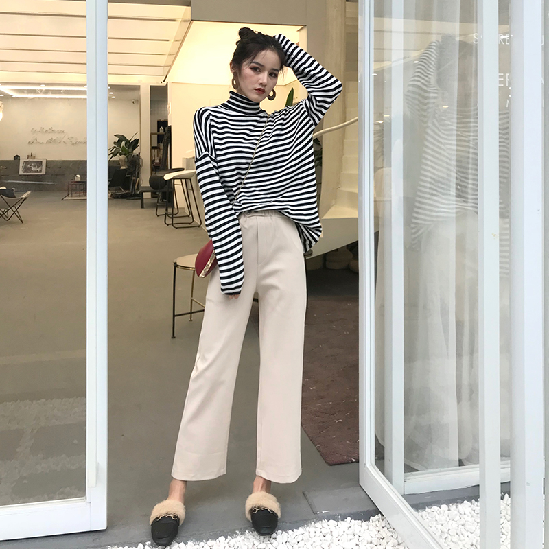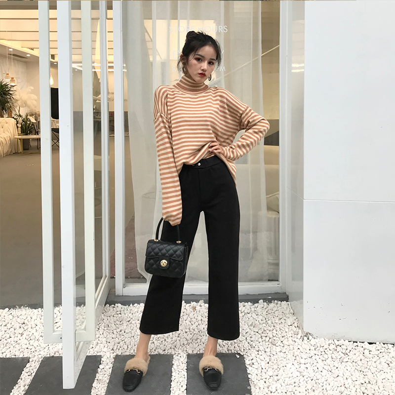 / 褲子女新款韓版復古chic九分時尚純色小清新學生微喇褲高腰休閑褲