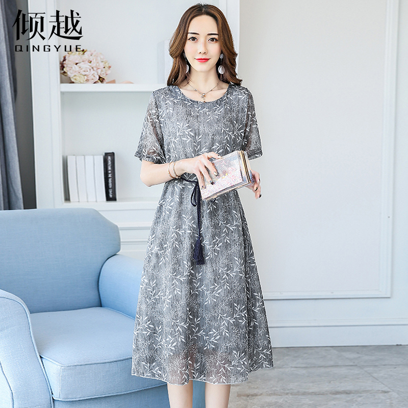 傾越連衣裙女夏2017新款韓版寬松顯瘦氣質中長款雪紡印花a字裙子