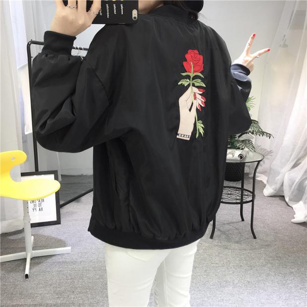外套女春裝2017新款潮韓版寬松休閑時尚短款連帽上衣刺繡棒球服女