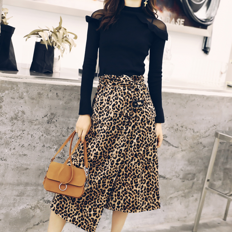 / 裙子女2018新款不規則半身裙高腰秋冬豹紋百搭中裙時尚針織衫套裝
