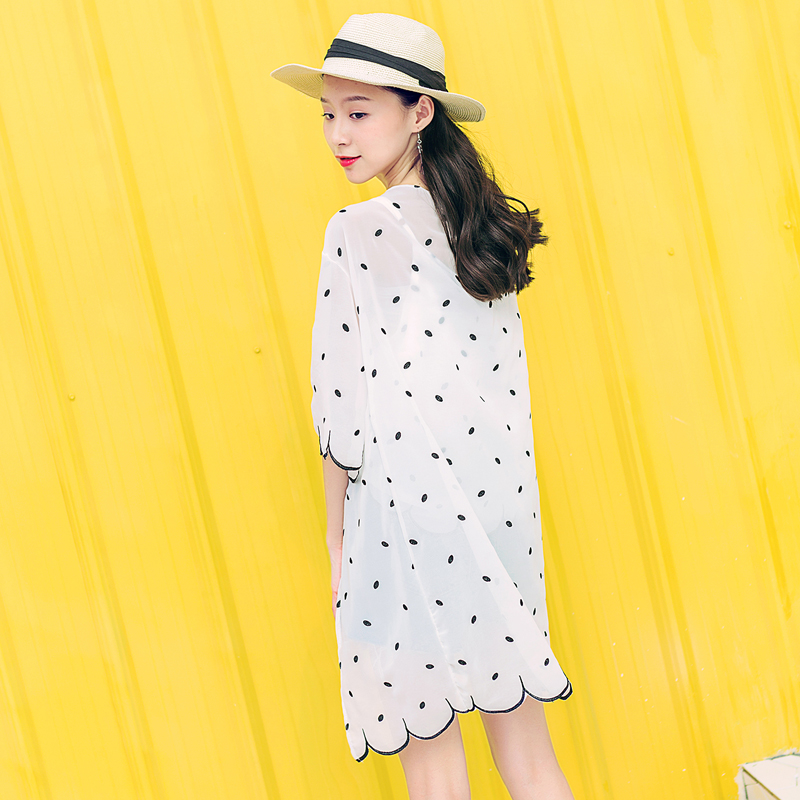 / 寬松波浪邊雪紡衫夏裝新款女裝韓版中長款波吊帶開衫兩件套潮