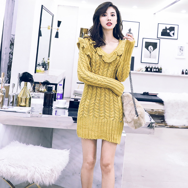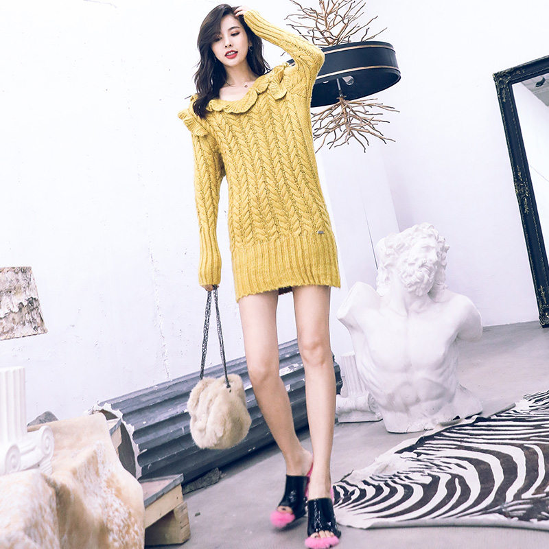 / 名媛氣質毛衣女初秋裝網紅款溫柔風2018新款中長款針織打底連衣裙