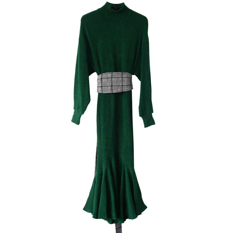 名媛針織連衣裙女長款秋冬韓版修身內搭復古網紅魚尾打底毛衣長裙