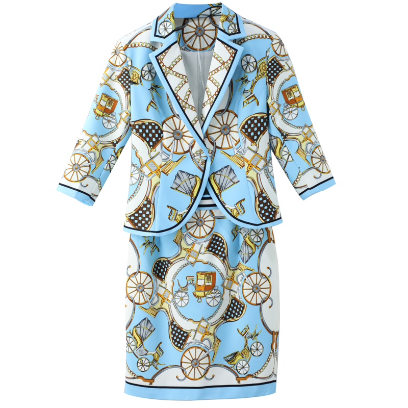 / 網紅氣質2018秋季新款時尚潮流氣質印花套裝兩件套朝仙女裝