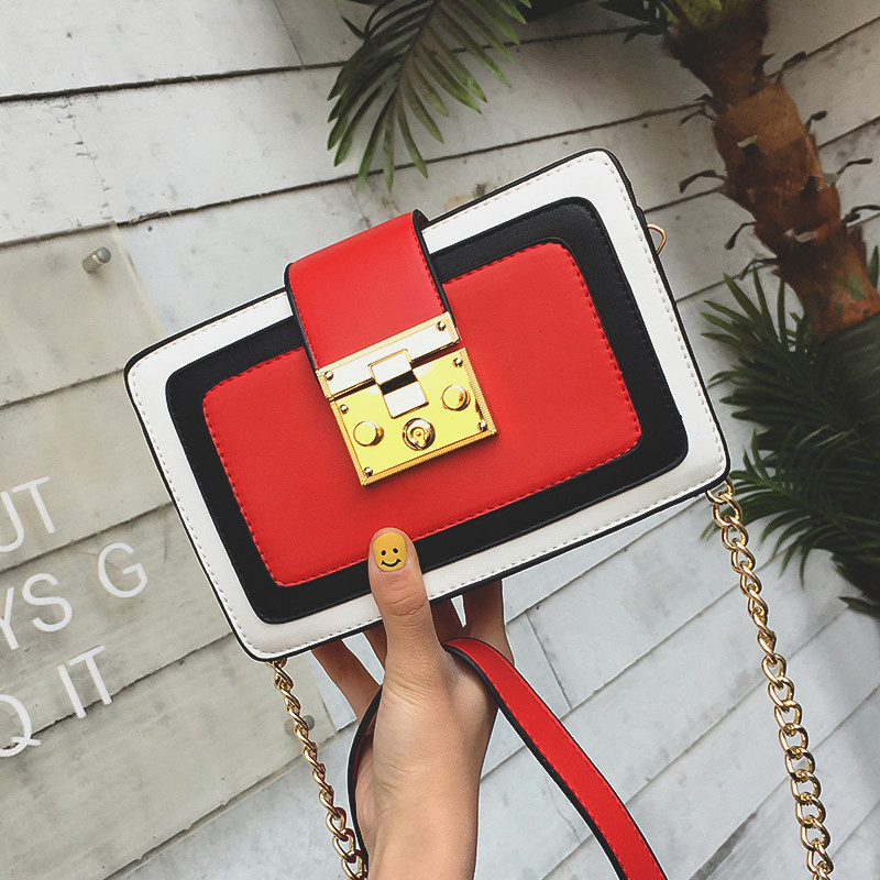 包包女新款潮撞色鏈條單肩女包小包韓版迷你小方包百搭斜挎包