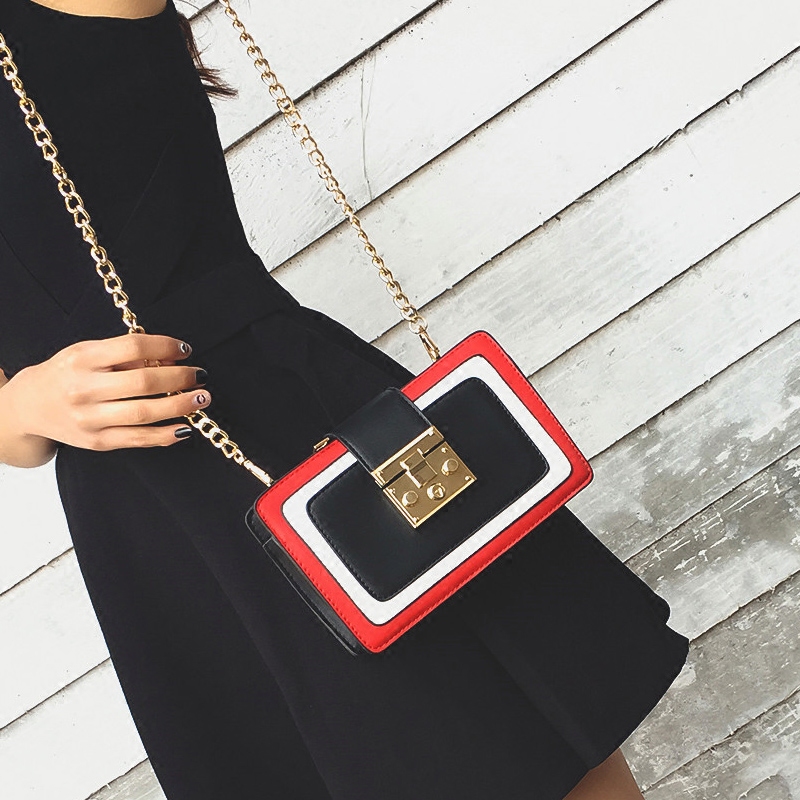 / 包包女新款潮撞色鏈條單肩女包小包韓版迷你小方包百搭斜挎包