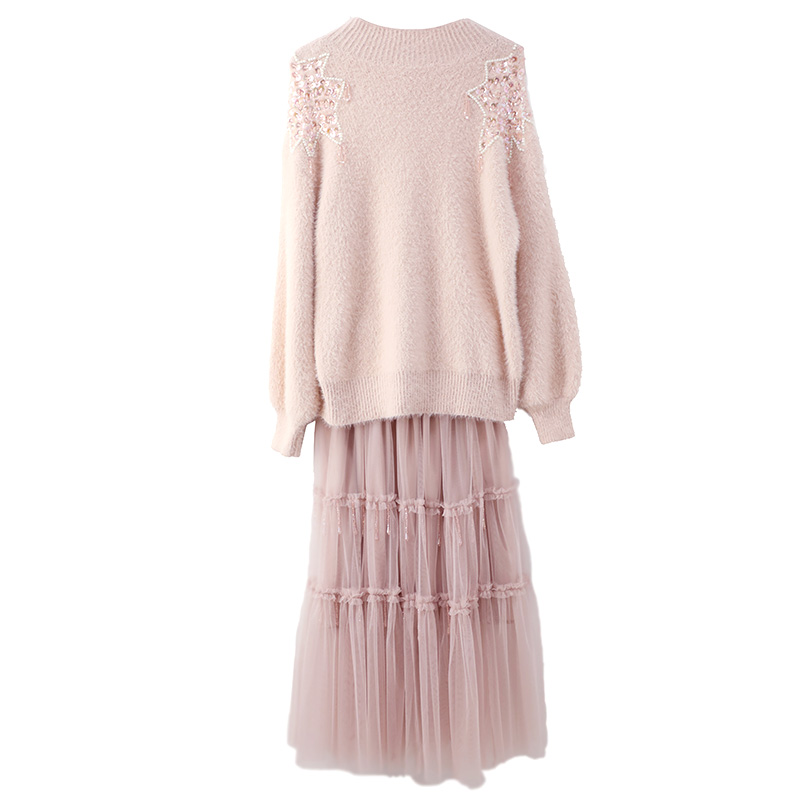 / 秋冬款套裝女2018新款針織上衣網紗半身裙兩件套淑女氣質中長款