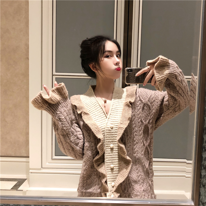 / 網紅毛衣女開衫秋冬新款百搭復古chic寬松韓版學生針織衫外套女裝
