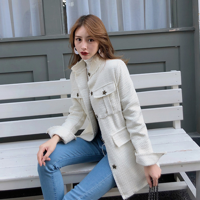 新款韓版小香風時尚星星長袖開衫復古chic秋冬氣質百搭女裝外套潮