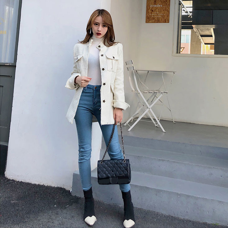 / 新款韓版小香風時尚星星長袖開衫復古chic秋冬氣質百搭女裝外套潮