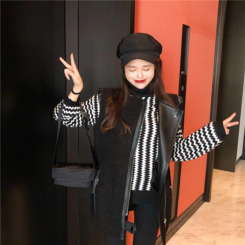 黑色馬甲|條紋毛衣