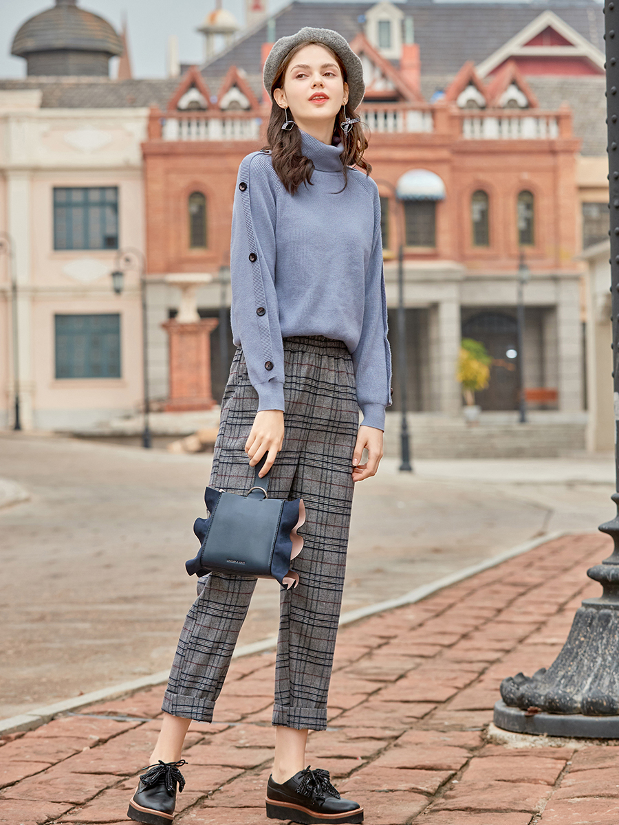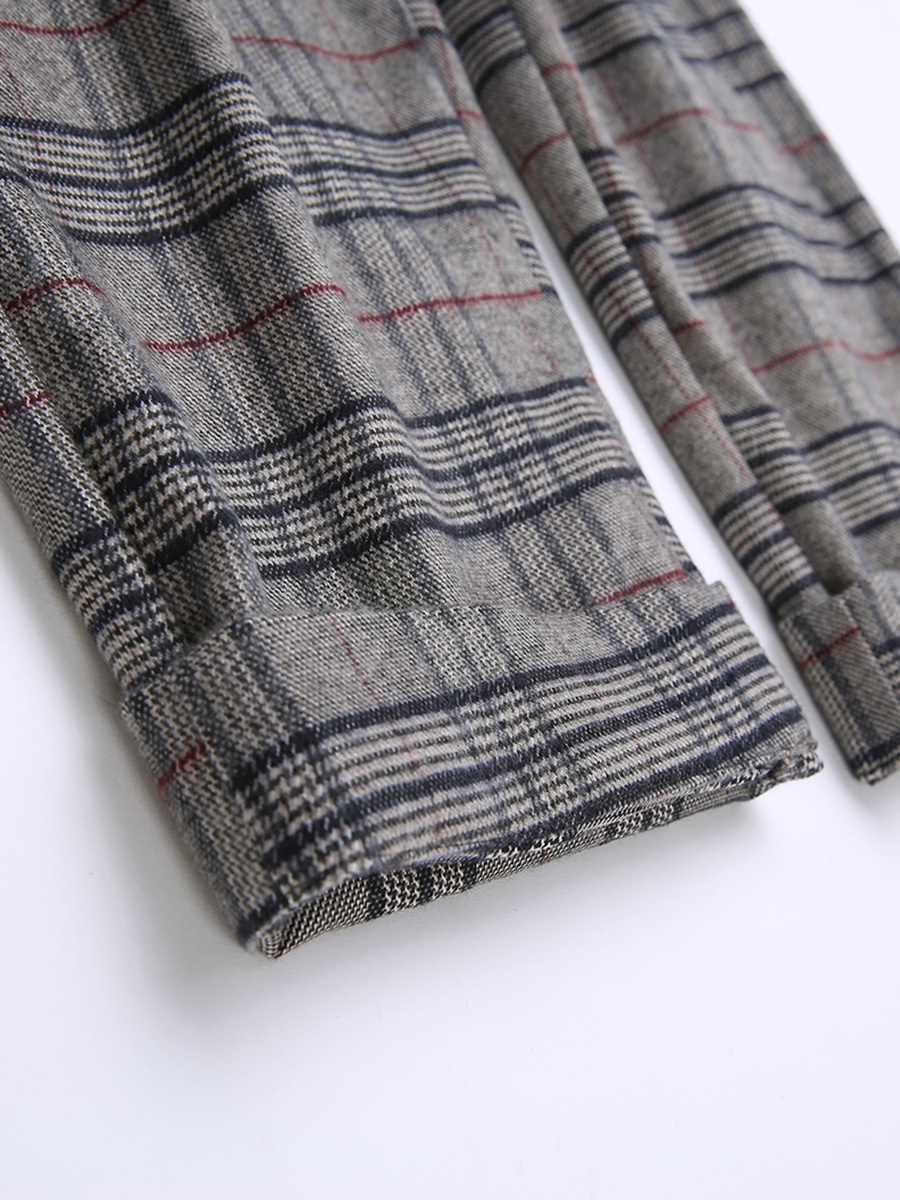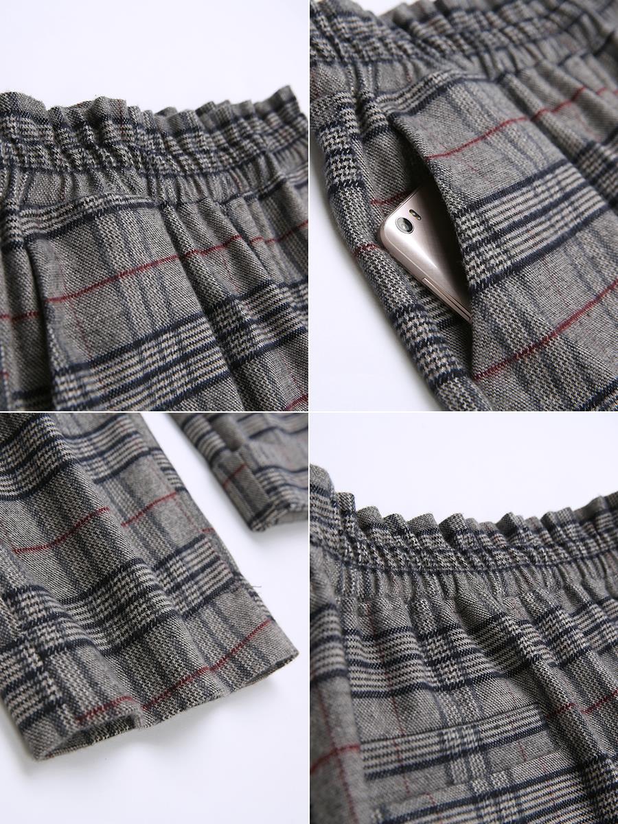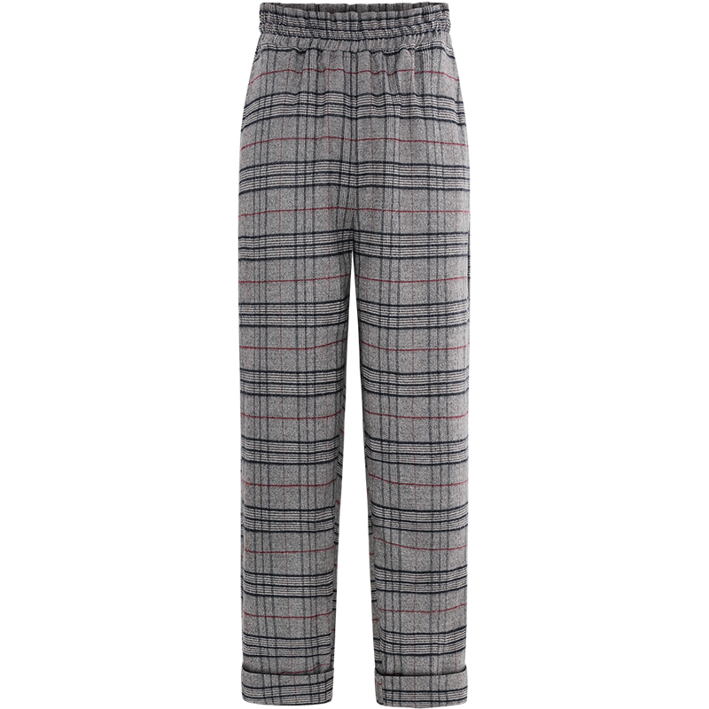MG小象格子高腰直筒褲女韓版寬松復古休閑褲冬季新款學生chic褲子