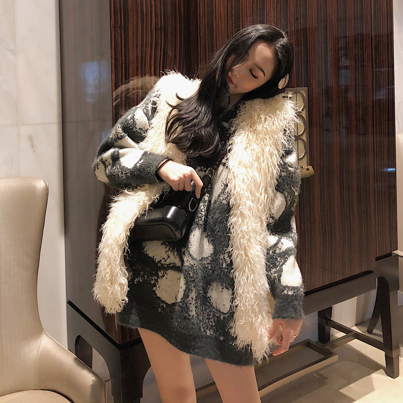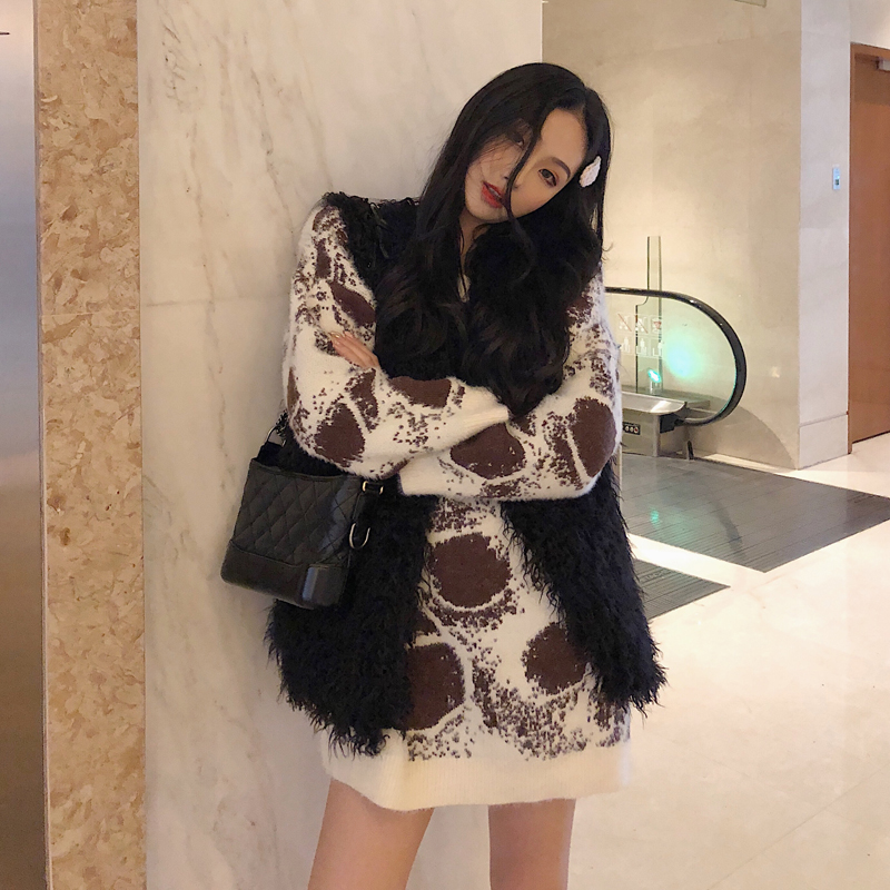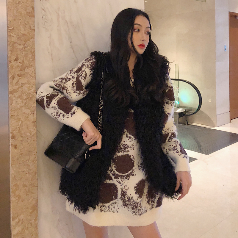 秋冬新款時尚套裝chic慵懶寬松中長款毛衣加厚長袖外套無袖馬甲女