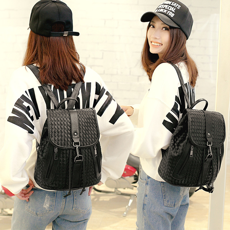 雙肩包女韓版pu時尚個性百搭編織包包新款女士背包女潮