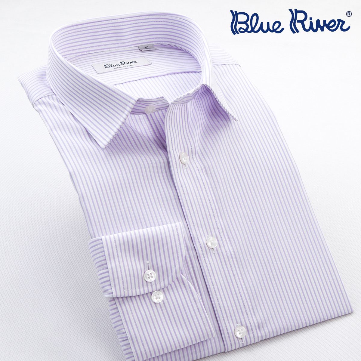 / 灰色條紋襯衫男長袖 商務 正裝紫色男式純棉修身休閑襯衣秋季新品