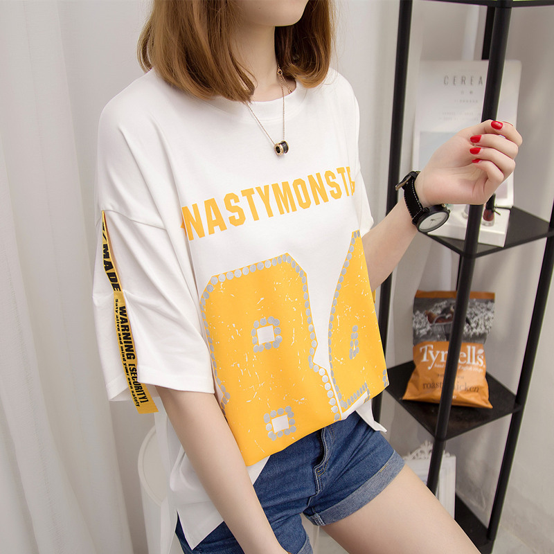 / 夏裝新款女裝白色寬松t恤女短袖韓版體恤衫韓版個性百搭潮