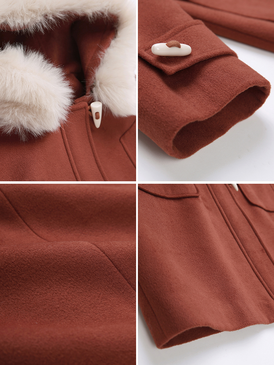 MG小象連帽牛角扣呢子大衣女中長款韓版冬季新款寬松復古毛呢外套