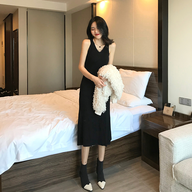 / 2018秋冬新款韓版時尚套裝毛毛開衫外套V領吊帶連衣裙chic兩件套