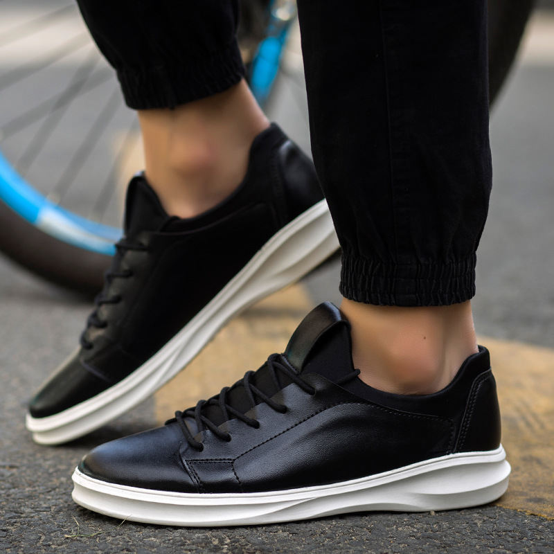 / 春季新款韓版潮流男鞋子學生厚底增高板鞋青少年個性潮鞋黑色