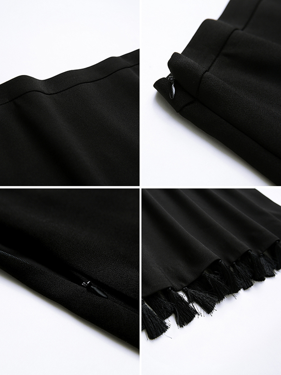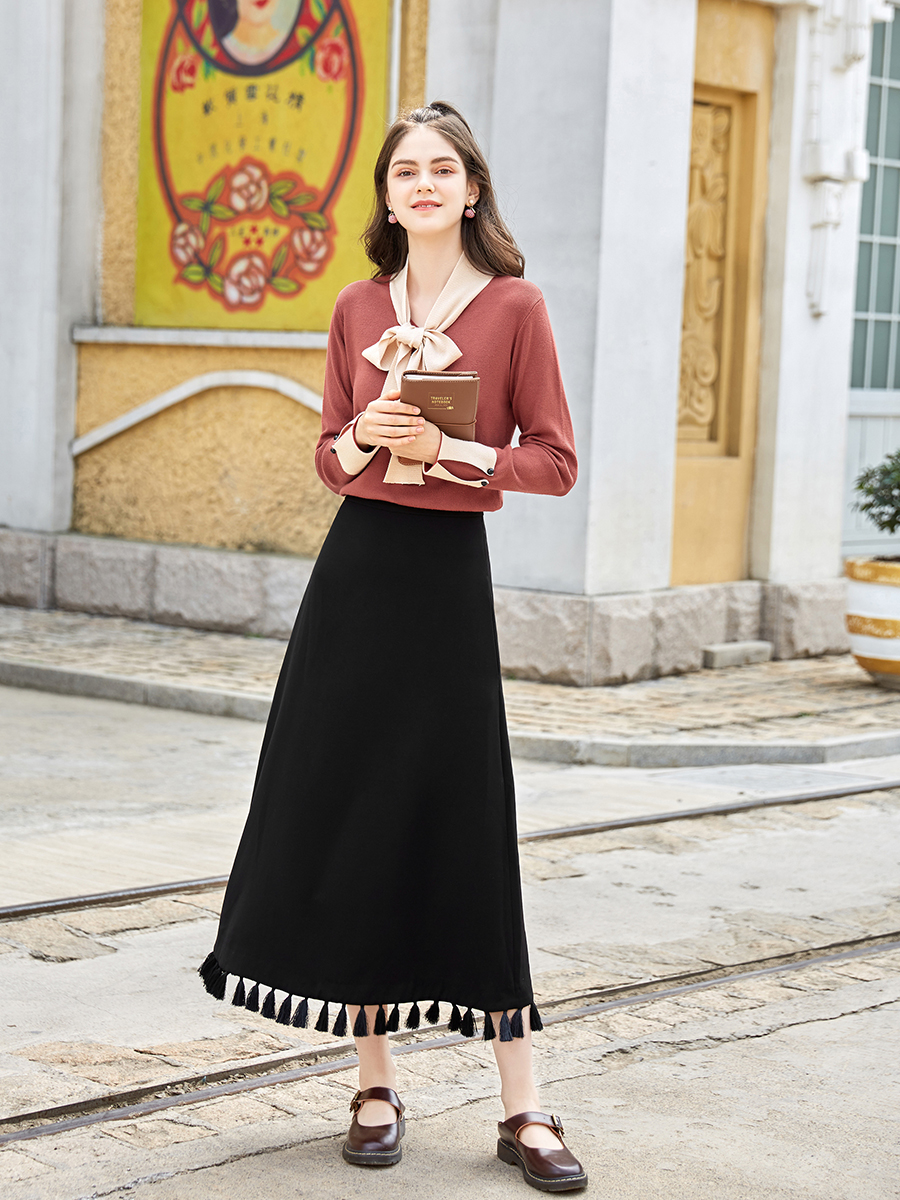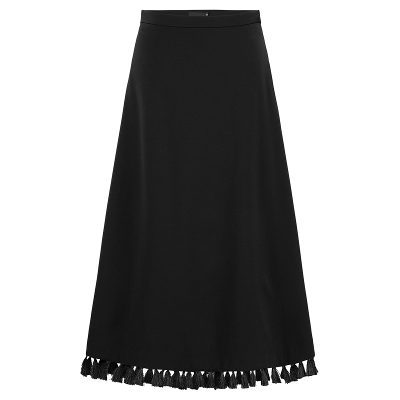 MG小象高腰黑色半身裙女中長款秋冬2018新款寬松氣質流蘇a字裙子