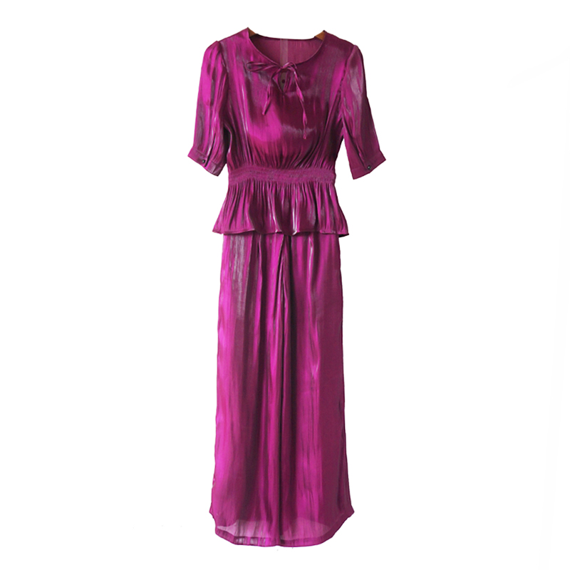 / 歐洲站優雅氣質時髦高腰顯瘦短袖上衣開叉闊腿褲裙兩件套時尚套裝