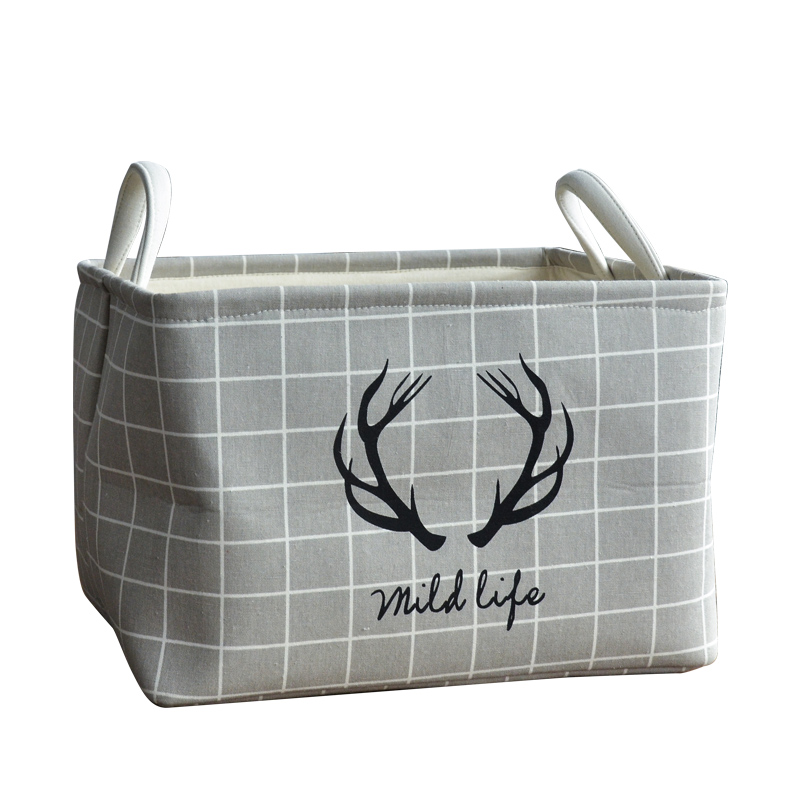 加厚桌面收納鹿角圖案兒童房玩具雜物收納盒可折疊