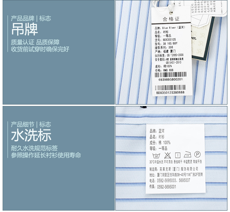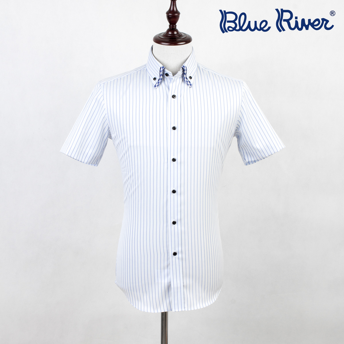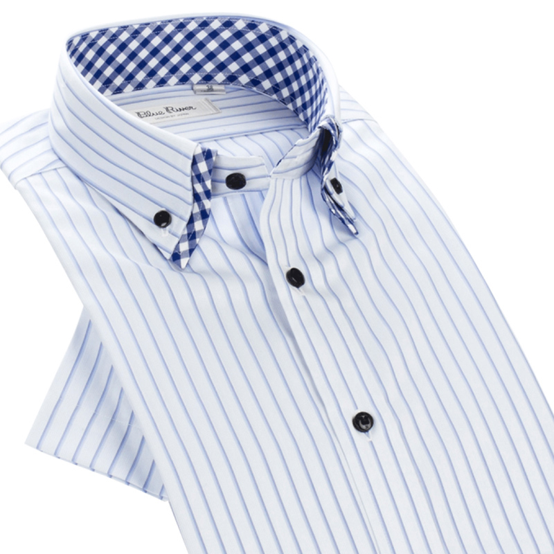 / 藍河夏季條紋男士襯衫男短袖襯衣半袖寸純棉商務休閑修身韓版潮流
