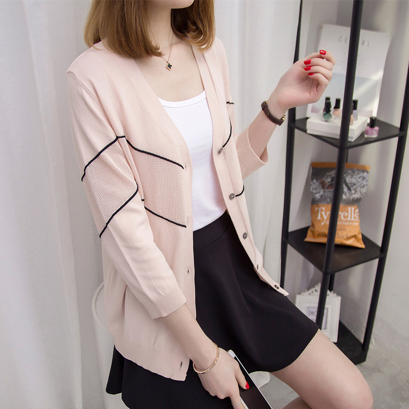 / 女裝春裝新款潮條紋針織衫女開衫寬松上衣毛衣外套打底空調衫