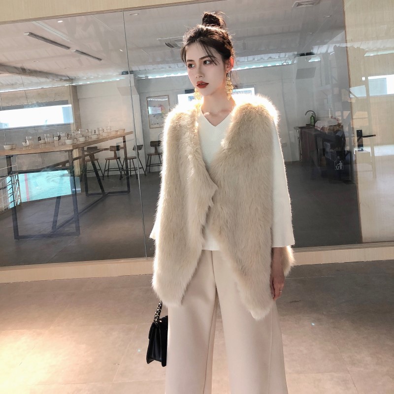 新款百搭毛毛馬甲寬松長袖針織衫毛呢闊腿褲三件套港風時尚套裝女