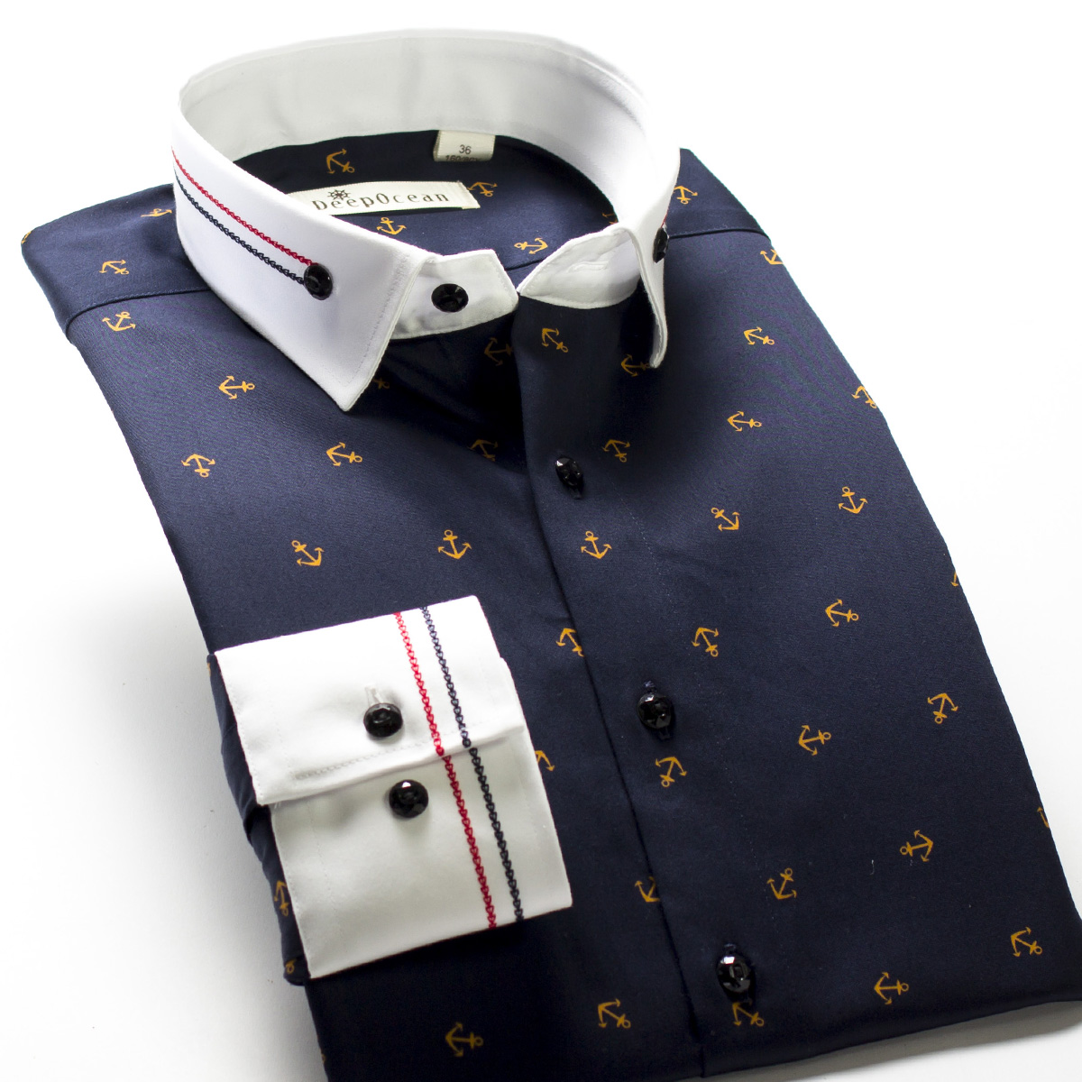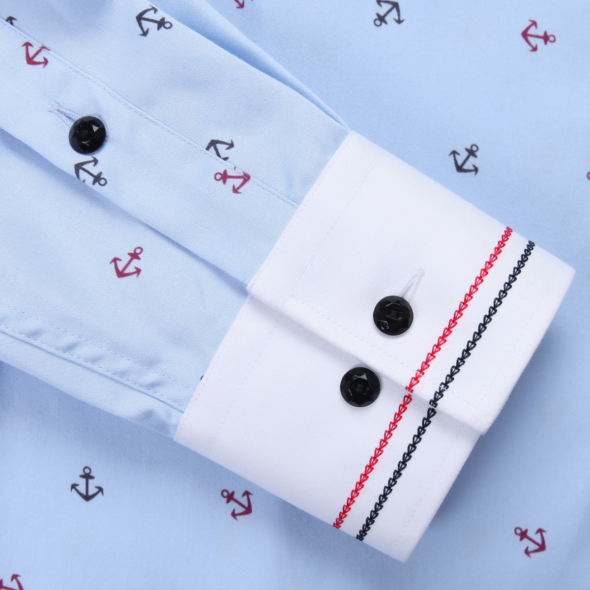 / 深海秋裝男士襯衫男長袖天藍色絲光棉印花免燙休閑修身襯衣男裝潮