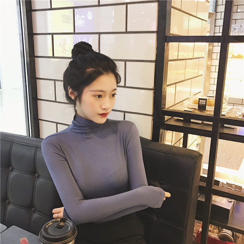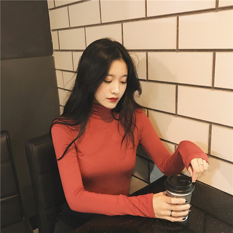 / 韓版Chic風早秋上衣新款時尚基礎款百搭顯瘦高領純色打底衫T恤女