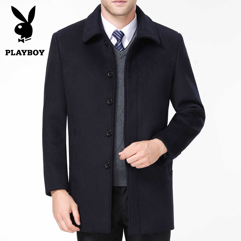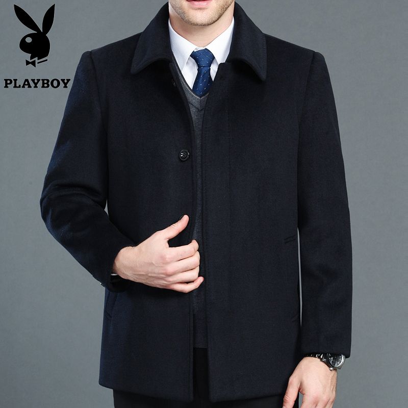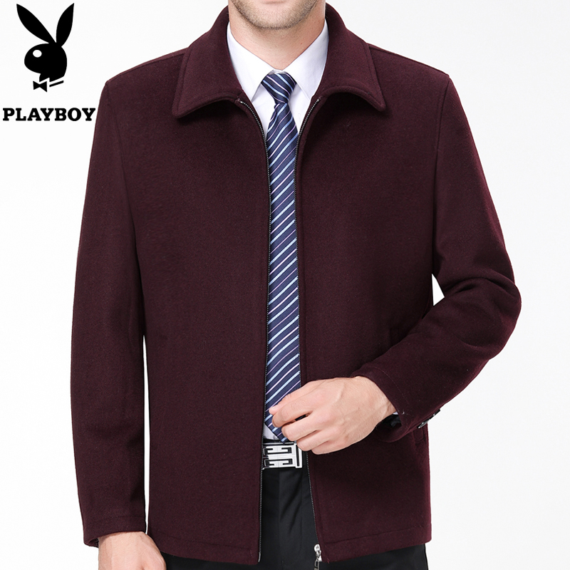 / 冬花花公子品牌中老年男士羊絨夾克商務男爸爸裝加厚毛呢大衣外套