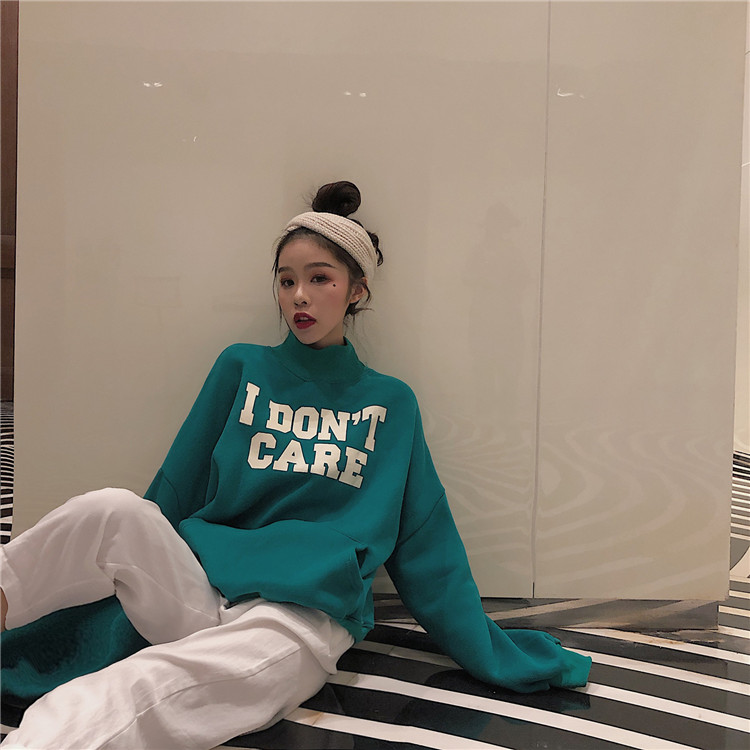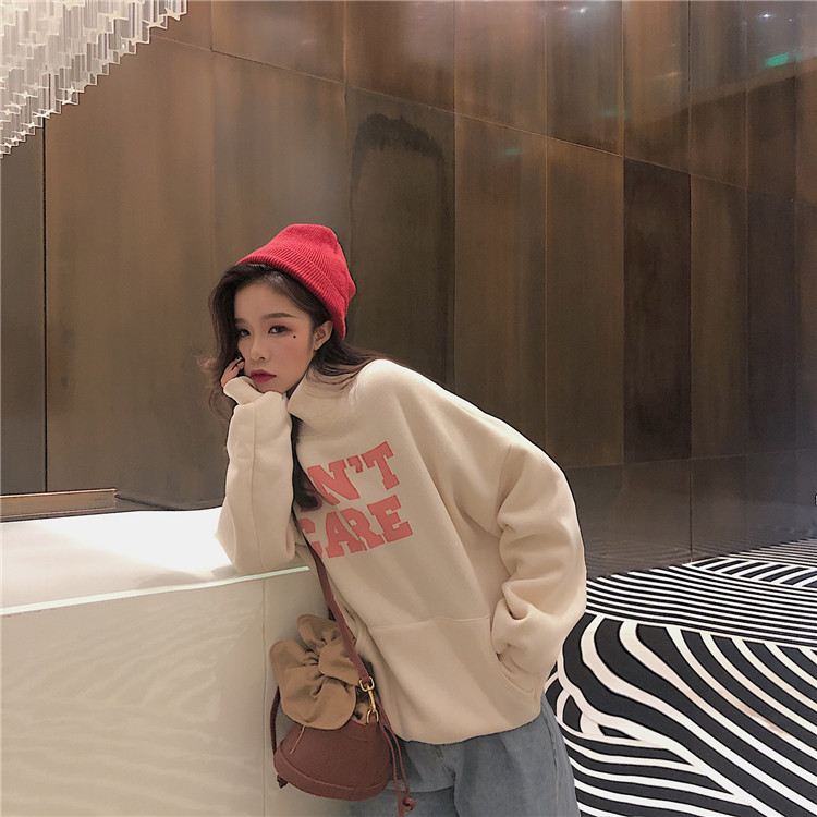 / 新款韓版時尚小清新字母印花chic秋冬女裝寬松長袖高領套頭衛衣潮