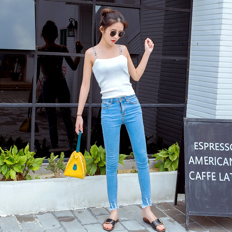 2017夏裝新款女裝百搭拼色小吊帶背心修身顯瘦針織打底上衣外穿潮