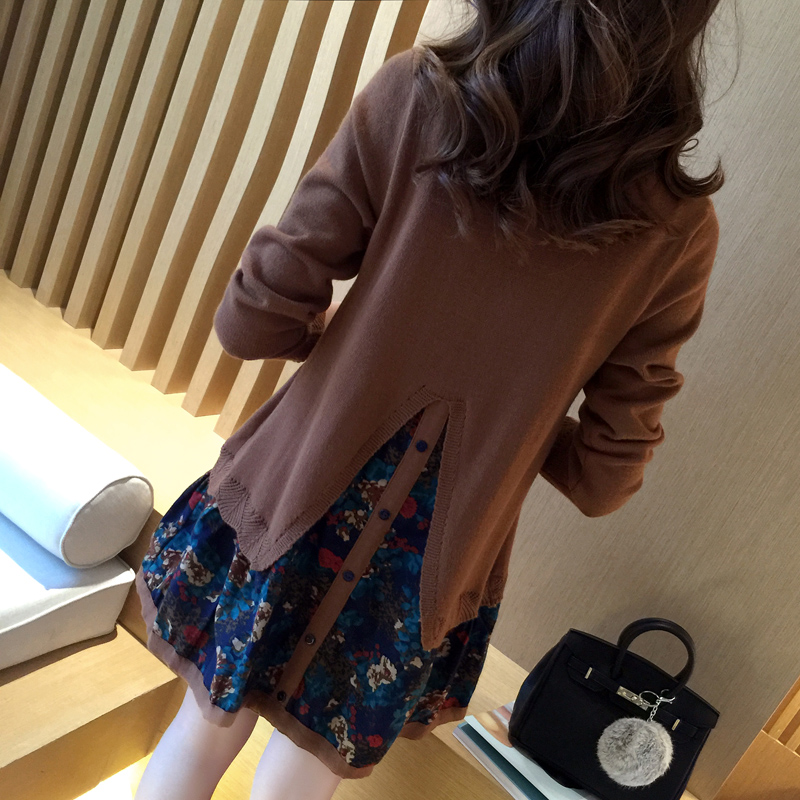 / 秋裝女裝新款潮韓版寬松針織衫套頭女毛衣長袖假兩件套連衣裙