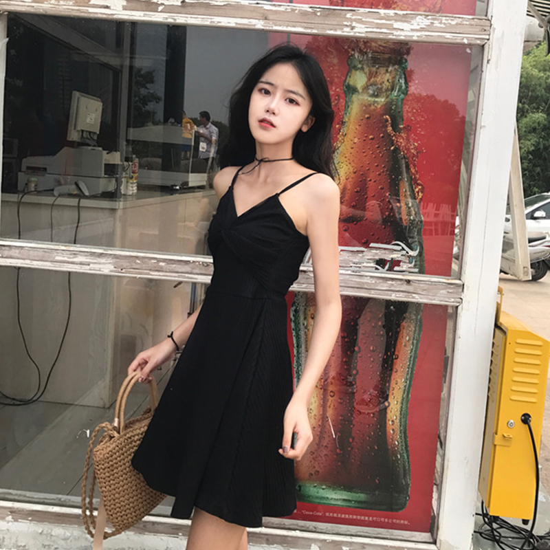 chic復古小性感V領交叉顯瘦修身連衣裙2018春夏新款內搭單穿都可
