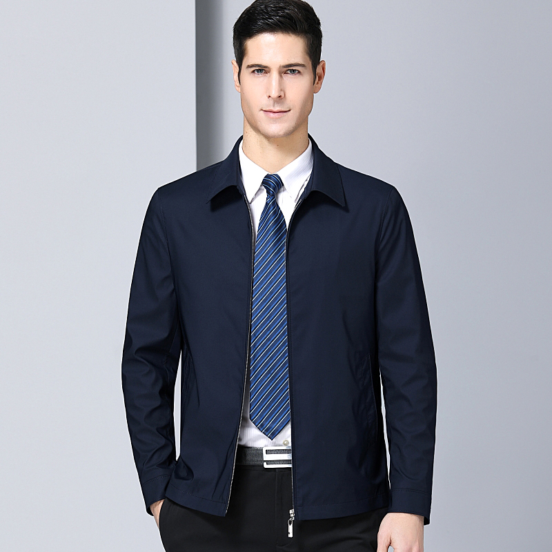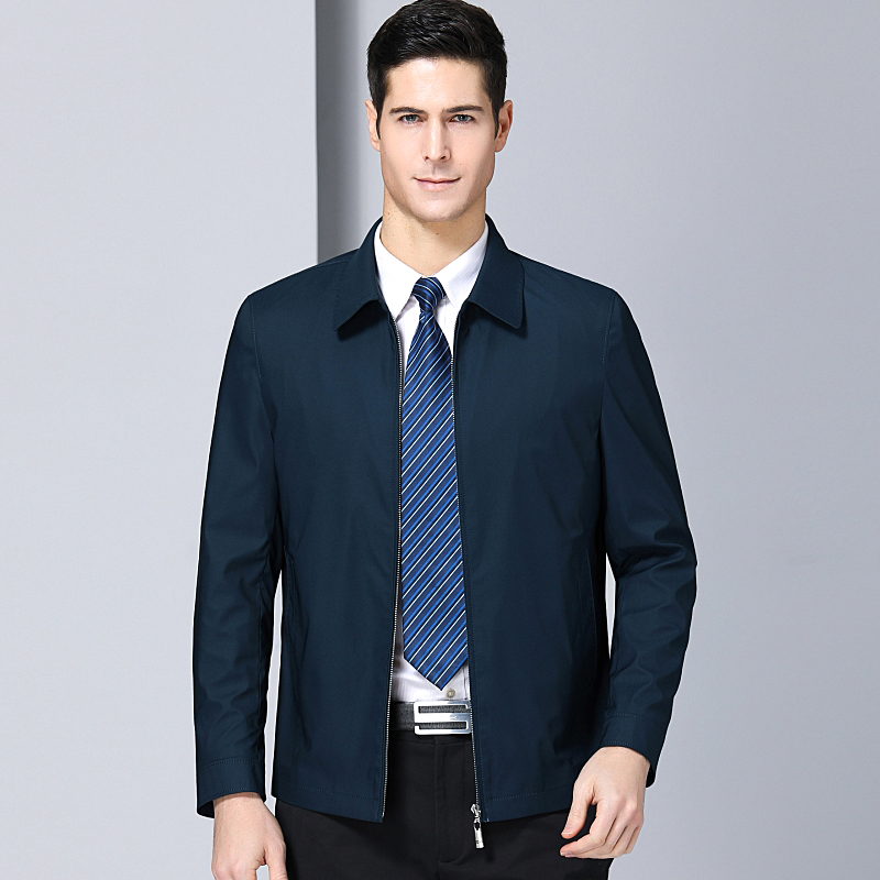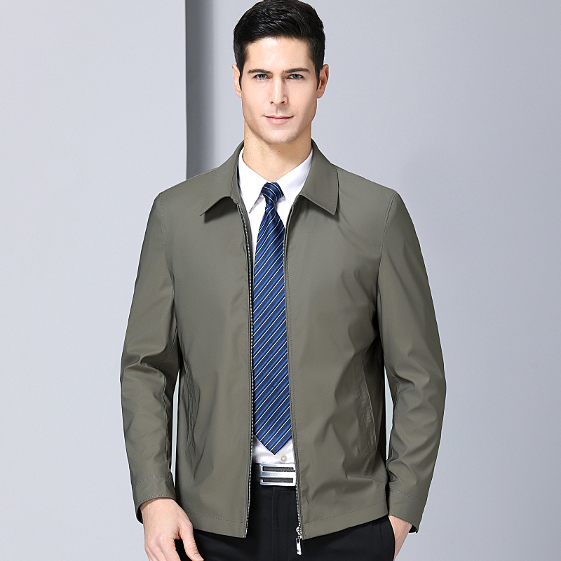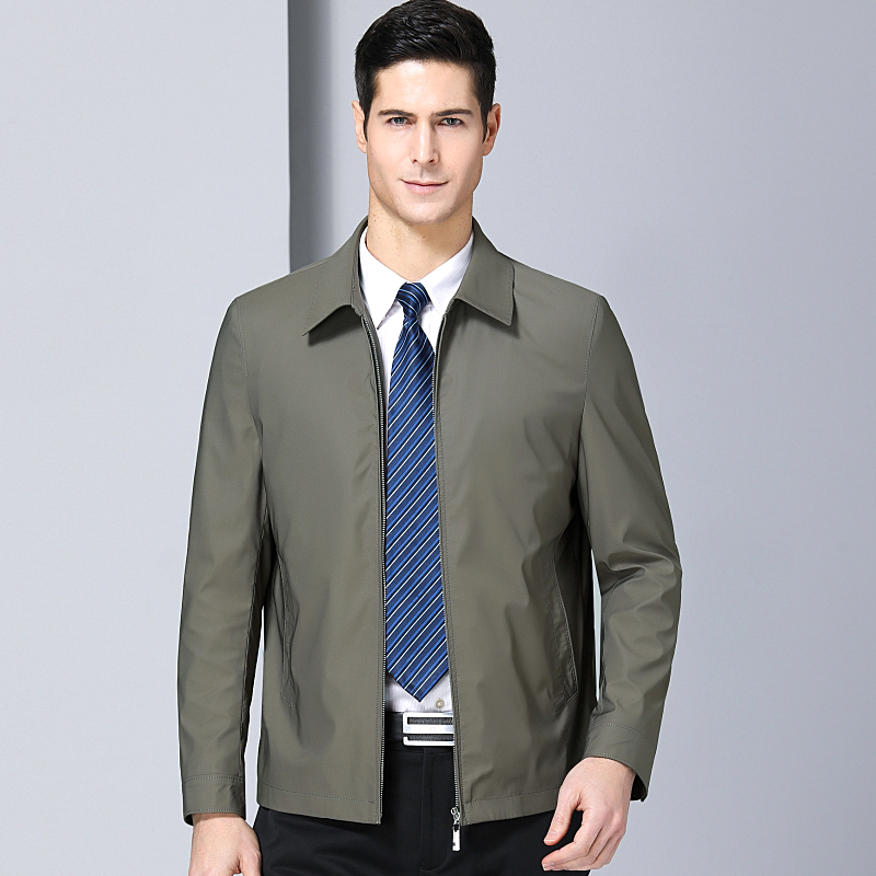 / 2018秋裝品牌中年男士休閑夾克商務中老年男父親裝翻領薄款外套
