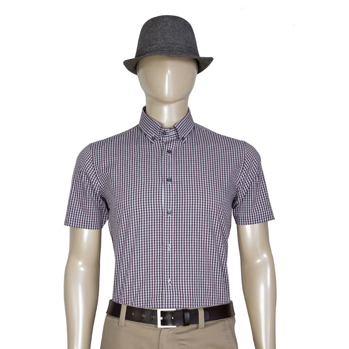 / 藍河夏季男士商務紳士休閑襯衫男格子修身短袖襯衣純棉寸衫