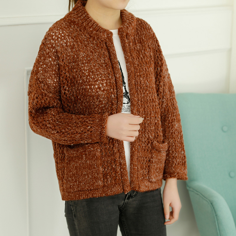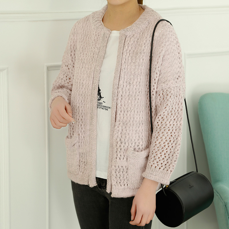 短款毛衣開衫女外套韓版寬松鏤空針織衫春裝新款上衣純色女裝