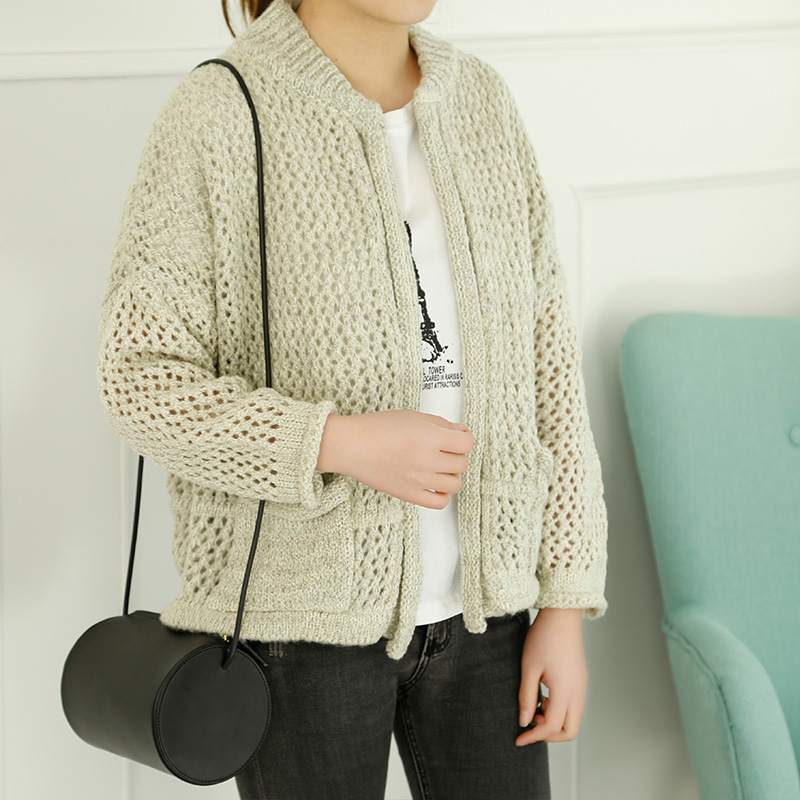 / 短款毛衣開衫女外套韓版寬松鏤空針織衫春裝新款上衣純色女裝