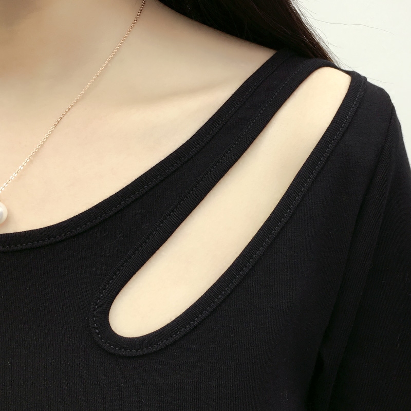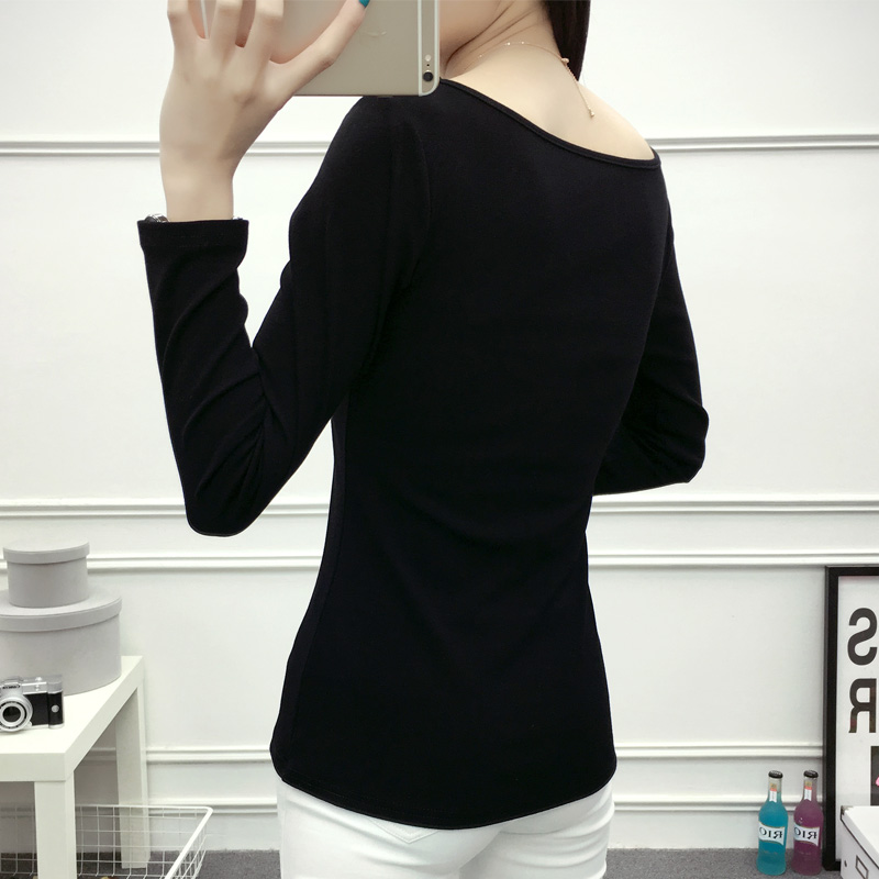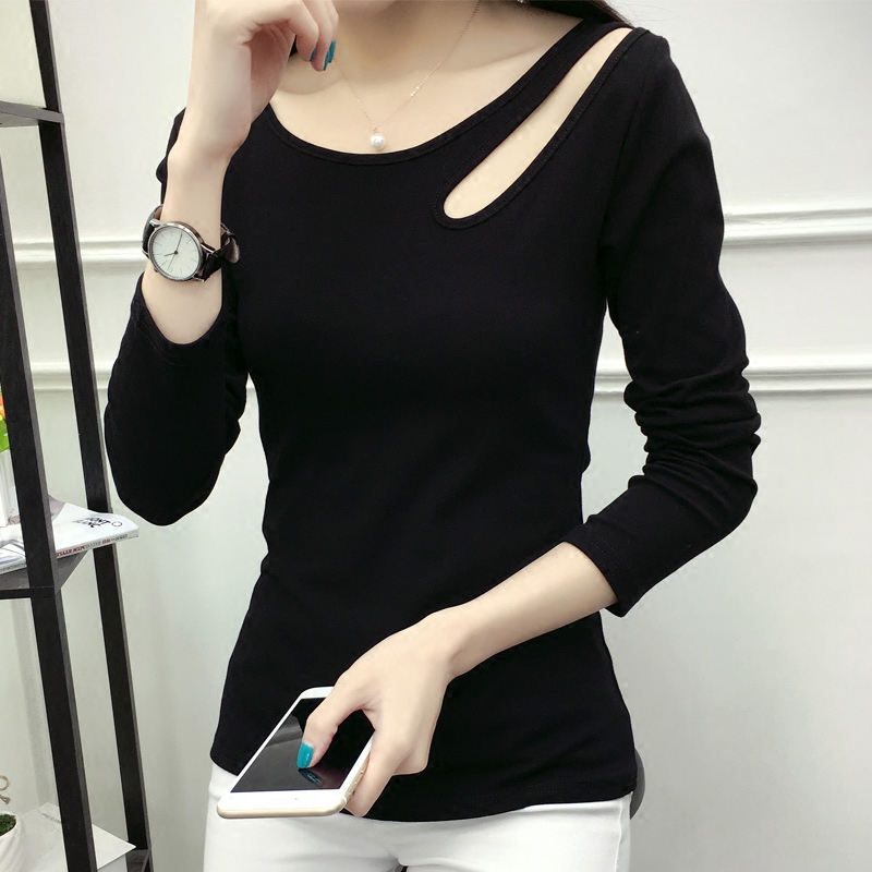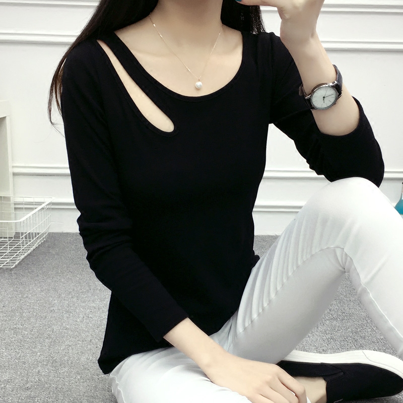/ 春款純棉長袖女T恤純色棉質圓領修身百搭體恤衫大碼顯瘦打底衫t桖