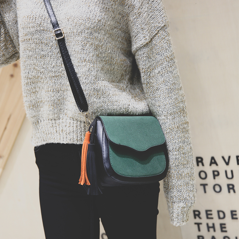 / 新款日韓版迷你小方包復古磨砂小包撞色流蘇單肩女包斜挎包潮