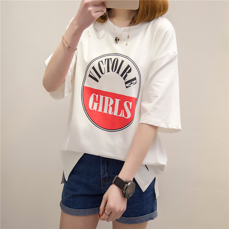 / 女裝春裝新款潮短袖t恤女寬松中袖韓版學生開叉夏季體恤百搭