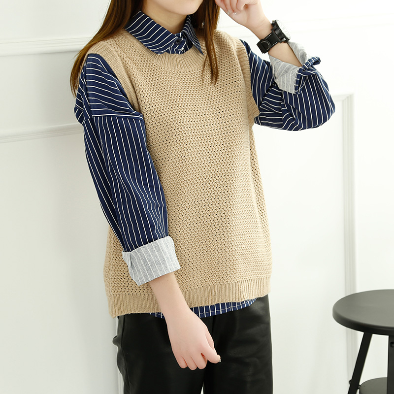 / 春裝新款女上衣毛衣背心兩件套針織衫套裝韓版長袖襯衣女裝潮