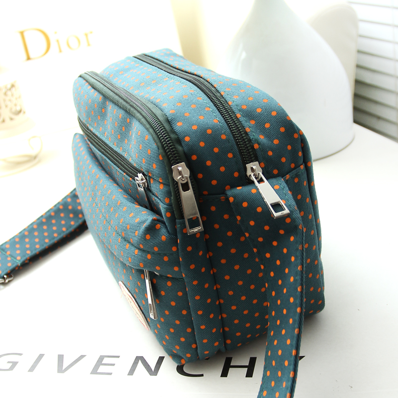 斜挎包女小方包波點帆布女士包包單肩包斜跨女包小包手機包媽媽包