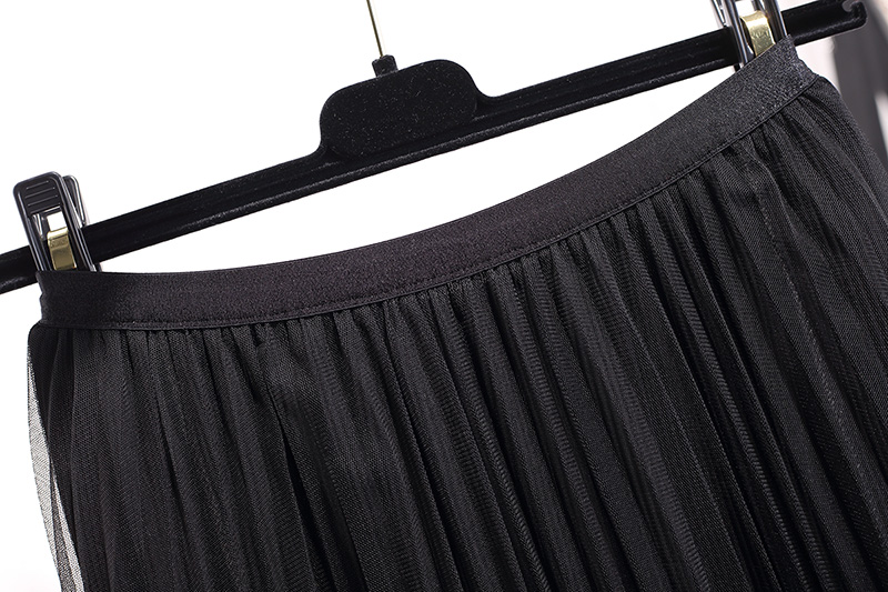 / 中長款網紗裙百褶裙春夏季新款韓版女高腰百搭雪紡半身長裙子