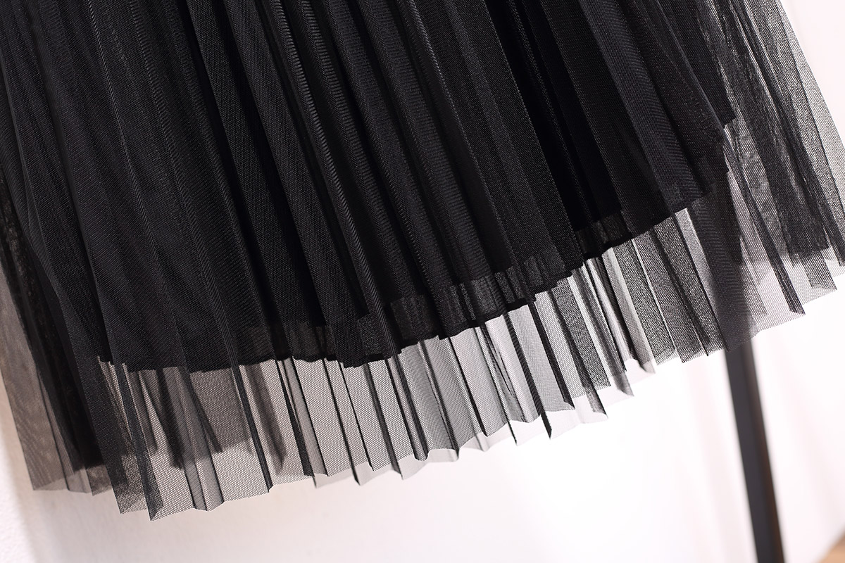 中長款網紗裙百褶裙春夏季新款韓版女高腰百搭雪紡半身長裙子